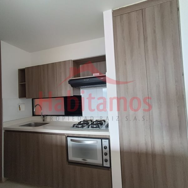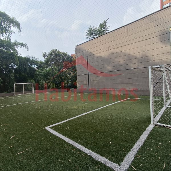 Apartaestudio de 1 alcoba, 2 baños, vestier, cocina integral, zona de ropas, balcón, calentador a gas, parqueadero cubierto, cuarto útil, unidad con piscina, gimnasio, cancha de squash, sendero para mascotas, cancha sintética, portería 24 horas.