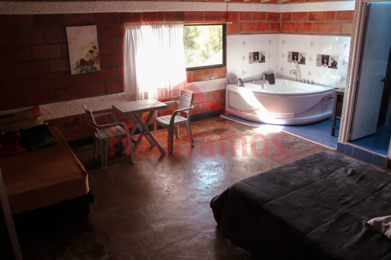 Finca de Recreo o turismo, son 4 casas en el lote total 14 habitaciones todas con baño, una de ellas cuneta con Jacuzzi, a 50 mt de la carretera principal que va a San Pedro a 8 min del parque principal, tiene piscina y zona de Kiosko.